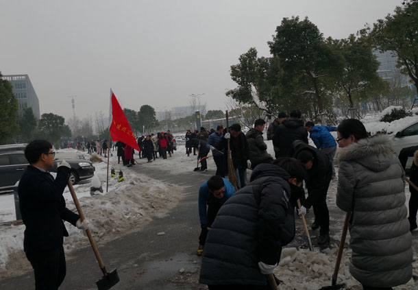 近日蕪湖市普降暴雪,給人民的出行造成諸多不便,帶來極大安全隱患。我公司積極響應(yīng)市委、市政府的號召,于1月26日牽頭召集金融服務(wù)區(qū)進駐單位建投公司、宜居公司、交投公司、民強公司、大橋公司、浦發(fā)銀行、農(nóng)發(fā)行、國元農(nóng)保、光大銀行、奇瑞徽銀及大華事務(wù)所等十余家單位,傳達市文明辦《關(guān)于立即組織人員掃雪除冰的緊急通知》,并對園區(qū)道路進行責(zé)任區(qū)劃分,約定統(tǒng)一行動。