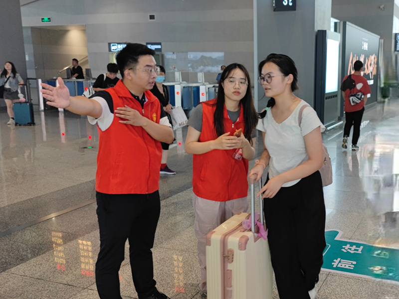 端午節(jié)將近,火車站內(nèi)來往乘客絡(luò)繹不絕,黨員同志們堅守著各自的崗位為乘客們提供志愿者服務(wù):面對不知路線的乘客,他們親切地詢問并指引;遇到尋找購票窗口的乘客,他們熱情地為其引導(dǎo);看見行李繁多的乘客,他們主動地上前分擔……